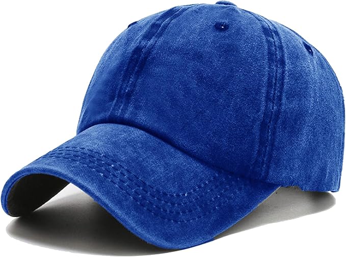 - Vintage washed distressed cotton baseball cap, classic and timeless style. Soft fabric in washed style, 99% cotton made, soft, lightweight denim fabric, make sure better comfort wearing. Dad Hat, Low Profile UNCONSTRUCTED.